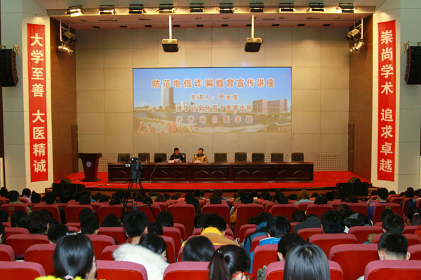 为提高全院学生的安全防范意识,增强师生预防各种电信诈骗的能力,11月19日,学院邀请建华公安分局卜奎派出所民警尹天龙在图书行政楼二楼多功能厅进行了防范电信诈骗教育宣传讲座。来自不同专业、年级的350余名学生代表聆听了讲座。尹天龙警官以淘宝购物、互联网兼职、网上银行等新型诈骗手段为切入点,深入分析了近期在学生中发生的典型诈骗案例,告诫广大学生要提高警惕,采用正当途径办理相关业务,以防上当受骗,造成个人财务损失。