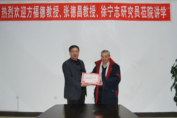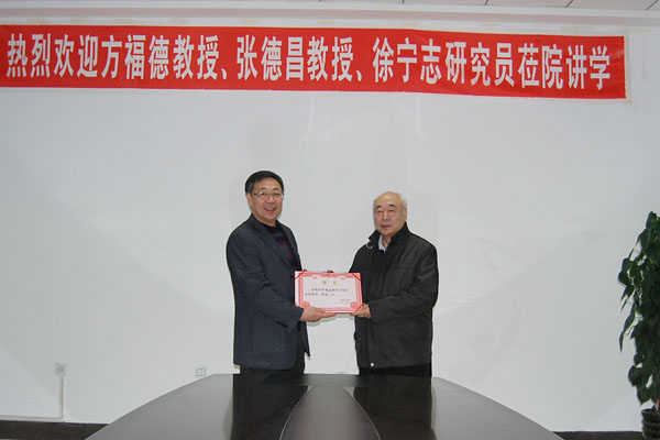12月22日,中国医学科学院、北京协和医学院基础医学研究所博士生导师方福德教授、张德昌教授应邀来院讲学。学院副院长丛明宇致欢迎词,并为方福德教授、张德昌教授颁发了客座教授聘书。