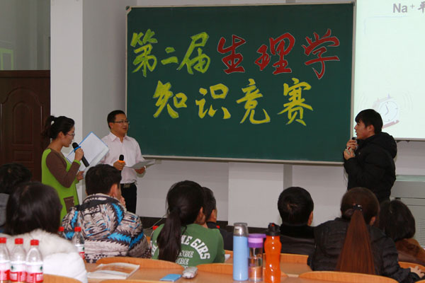 为推动教学方法改革,提高学生学习兴趣,基础医学院生理教研室于12月下旬举办了第二届生理学知识竞赛。竞赛面向2013级全体学生,以班级为单位参加比赛。经过选拔赛和初赛的激烈角逐,共有10支代表队从36支参赛队伍中脱颖而出,参加了12月23日晚在教学主楼北区205教室举行的第二届生理学知识竞赛决赛。学院副院长张晓杰、基础医学院领导班子成员等担任评委。