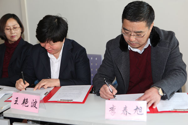 市第七医院业务副院长王艳波与学院病理学院院长李春旭签署医疗服务合作协议书