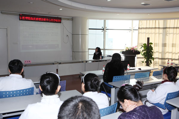 揭牌仪式后,学院病理学院副院长刘婷副教授、基础病理教研室主任柏青杨教授分别以《胃镜取材规范与免疫组化的应用意义》《肝活检病理与临床》为题,同与会人员进行了学术研讨。