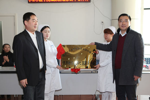 市第七医院常务副院长朱同海与学院病理学院院长李春旭共同为分中心揭牌
