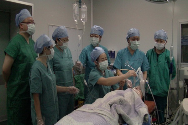 附属三院呼吸二科石寒冰主任带领医护人员为患者进行全肺灌洗术