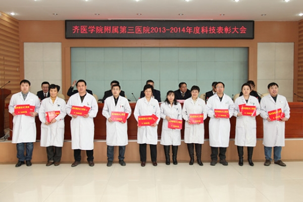会上,医院副院长李晓华宣读了《齐齐哈尔医学院附属第三医院科技工作奖励办法》,副院长孙庆顺宣读了《齐齐哈尔医学院附属第三医院关于2013-2014年度科技奖励的决定》。随后,学院领导及附属三院领导班子成员为获奖人员颁奖。附属三院此次投入奖励资金18万余元,对9项科技进步奖、36项科研项目奖、37项新技术奖、3项优秀论文奖、2项专利奖,80余人次予以奖励。
