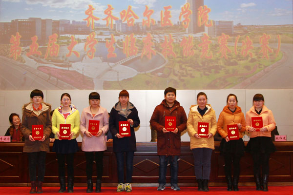 3月14日,学院第五届大学生临床技能竞赛决赛在秋实城三楼举行。附属第一、二、三、五、六、十医院及黑龙江省农垦总局总医院7家教学医院各派出两支队伍参加比赛。经过激烈角逐,附属第三医院荣获团体一等奖,附属第一、第二、第五医院荣获团体二等奖,附属第六医院、省农垦总局总医院、附属第十医院荣获团体三等奖。张晓杰副院长出席闭幕式为获奖选手颁奖,学院院长刘吉成到比赛现场指导工作,并与候场选手交谈,鼓励学生扎实临床技能。