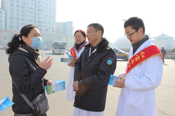 3月24日,附属一院联合红宝石社区卫生服务中心、幸福社区卫生服务中心及感染性疾病科医务人员,在富拉尔基区五百广场,通过黑板、条幅、宣传材料等向市民宣讲预防结核病的意义和治疗结核病的方法,努力营造没有歧视的社会环境。