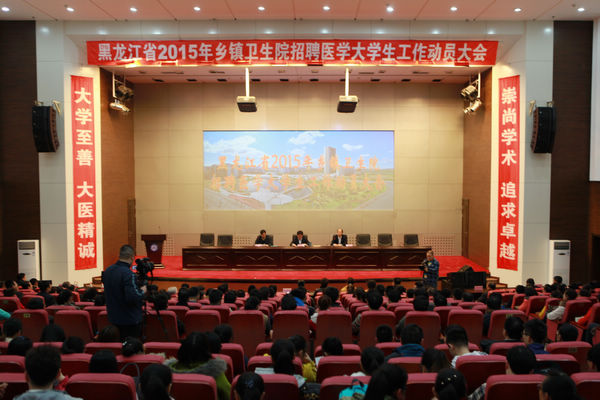 3月24日,黑龙江省2015年乡镇卫生院招聘医学大学生工作动员大会在学院图书行政楼二楼多功能厅召开。省卫计委党组成员、副主任、省中医药管理局局长王学军出席大会并作动员报告,省卫计委基层卫生处处长王永江传达了2015年全省乡镇卫生院招聘医学生工作的有关文件精神,来自全省部分地市卫生局、乡镇卫生院的相关负责人、学院毕业生代表参加了动员大会,大会由学院党委副书记崔光成主持。