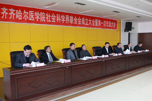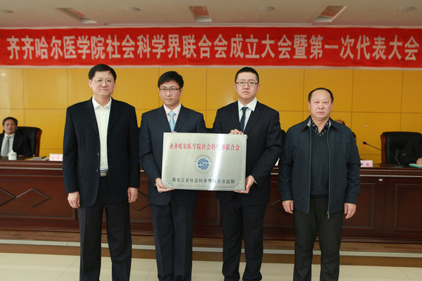 学院党委书记、社科联第一届委员会主席邱福利与省社科联副主席张正明共同为“齐齐哈尔医学院社会科学界联合会”成立揭牌。齐医学院社科联第一届委员会主席邱福利在讲话中指出,学院全体社科工作者将共同努力,在省市社科联的指导下,高举旗帜,把握方向;搭建平台,营造氛围;围绕大局,提升能力;完善机制,强化队伍,以崇高的责任感和使命感,扎实工作,开拓创新,为促进我省哲学社会科学的大繁荣、大发展,为加强学院高水平特色应用型本科高校建设,早日实现医科大学的齐医梦做出贡献!