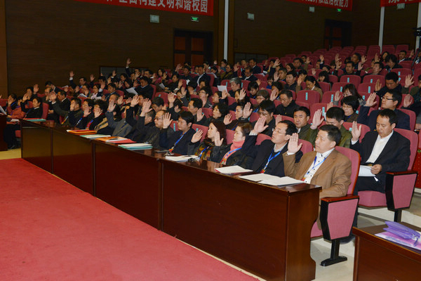 4月17日16时许,齐齐哈尔医学院五届一次教职工代表大会暨首届工会会员代表大会圆满完成了大会各项议程,胜利闭幕。学院党委书记邱福利发表讲话,学院党委副书记谭忠汉主持第三次全体代表大会。