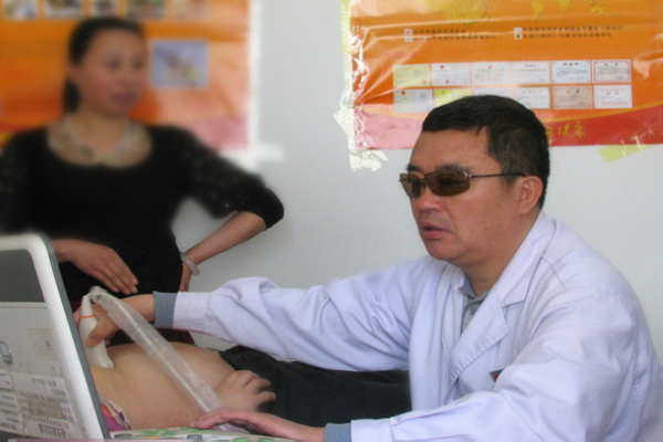 超声科主任辛明志为患者做检查