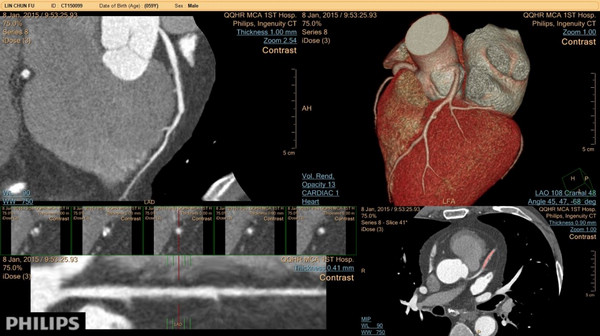 飞利浦256层极速CT检查冠状动脉狭窄成像图