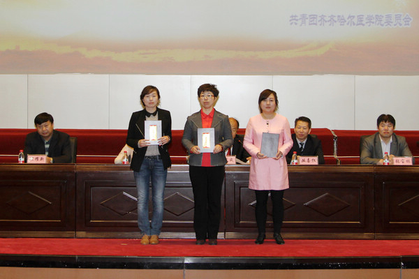 会上,学院团委对一年来在团的各项工作中表现突出的“五四红旗团支部”等19个先进集体,“优秀团干”、“学习标兵”、“优秀社团干部”等394名先进个人进行了命名表彰。学院党委副书记崔光成作重要讲话。他指出,学院各级团组织依托大学生课外科技活动、校园文体活动、社会实践活动以及志愿服务活动等平台,在培养青年学生的道德素养、专业技能以及社会发展能力方面作出了突出贡献。他希望青年学生以德为先,树立全面发展的观念;勤奋学习,在社会实践中主动锤炼自己。他还希望共青团组织要不断创新工作机制,切实服务青年成长成才;各级共青团组织和全院青年团员要心往一处想、劲往一处使,同舟共济、团结协作,为实现“医科大学”的“齐医梦” 和中华民族伟大复兴的“中国梦”贡献力量。