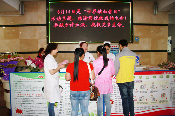 6月14日是第十二个“世界献血者日”,今年的主题是“感谢您挽救我的生命”。附属一院输血科联合医务科、宣传科,在医院门诊大厅设立无偿献血宣传展板、标语及宣传站,由专家为过往市民普及“无偿献血”相关知识。活动旨在通过医务工作者的宣传和带动,唤起更多人了解、关心、参与无偿献血,激励更多人投入到“奉献少许血液,挽救更多生命”的伟大行动之中,从而推动无偿献血事业的健康发展。