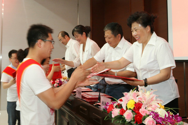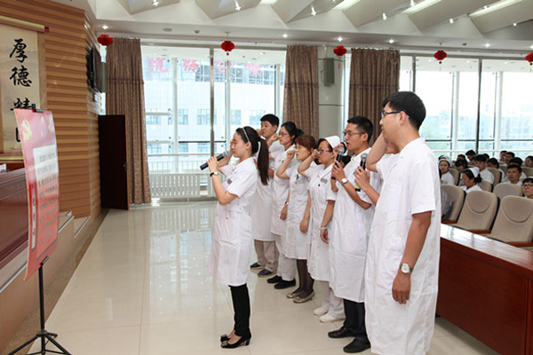 在建党94周年来临之际,附属医院召开了庆祝建党94周年暨命名表彰大会,隆重纪念中国共产党成立94周年。 6月30日下午,附属一院在新落成的内科综合楼学术报告厅隆重举行庆祝建党94周年暨命名表彰大会。会上,附属一院院长张嘉伟宣读了命名表彰决定。医院党委书记胡凯在讲话中指出,今年是建党94周年,是抗日战争胜利70周年,也是世界反法西斯战争胜利70周年,医院广大党员要坚持道路自信、理念自信、制度自信,只有中国共产党,才能团结全国人民把国家建设好,民族发展好,实现伟大复兴的中国梦。胡凯书记提出三点希望,一是以“三严三实”专题教育为主线,做好党建工作;二是以“三严三实”的工作态度与作风,做好医院下半年工作;三是以开放、包容、自由的心态迎接新时代的挑战。 附属一院受表彰代表上台领奖 表彰大会后,附属一院进行了合唱比赛。各支部、工会分会共六支队伍依次登台演唱。演员服装整齐,歌声嘹亮;指挥激情饱满,聚焦人心;观众热情高涨,喝彩不断;评委仔细遴选,公平公正。附属一院人用一曲曲优美的旋律,为党的生日献上了深深的祝福。 附属一院合唱比赛现场 6月30日,附属二院隆重表彰了在医院党建工作中涌现出来的先进单位和先进个人。大会在庄严的国歌声中拉开帷幕,22名新党员代表庄严宣誓加入中国共产党。优美动听的诗朗诵《盛世中国》表达了对中国共产党的热爱,对祖国的热爱,对职业深深的爱。会上,附属二院党委书记丁国旭希望全体职工发挥政治核心作用,为医院改革与发展保驾护航;坚持原则,选好建强干部队伍;以基层组织建设为着力点,不断增强党支部的战斗堡垒作用;巩固党的群众路线教育实践活动成果,为医院发展再创新的佳绩。 附属二院受表彰代表领奖 附属二院还开展了迎七一徒步健身活动,医院领导班子和各科室徒步爱好者近60人参加。 此次徒步走活动不仅让大家欣赏了美景,锻炼了身体,陶冶了身心,同时也为大家互相了解、加强交流搭建了平台,更好地营造了和谐的工作氛围。 附属二院开展迎七一徒步健身活动 6月29日下午,附属三院召开大会表彰在医院各项工作中发挥战斗堡垒和模范先锋作用的先进集体和先进个人,新党员代表在党旗下庄严宣誓。会上,附属三院党委书记苏江希望医院全体党员做思想上的先锋,做行动上的表率,做作风上的楷模,借住院综合楼的启用、新绩效改革方案的实施,扬起梦想的风帆,为建设美丽附属三院,为早日实现附属三院的腾飞而努力奋斗!会上,附属三院领导还为在医院党委举办的“庆七一”征文活动中,获得一、二、三等奖及优秀奖的作者颁发了获奖证书。 附属三院受表彰代表上台领奖 附属三院新党员宣誓 (附属第一、第二、第三医院供稿) |