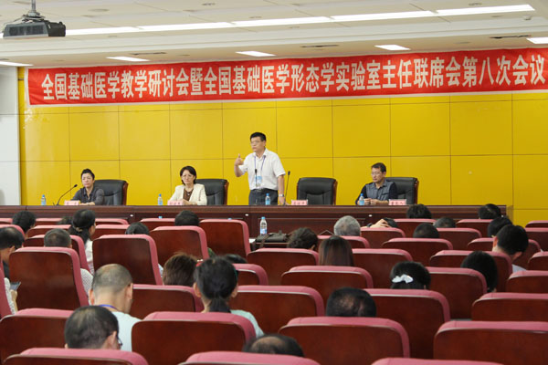7月22—23日,由学院承办的全国基础医学教学研讨会暨全国基础医学形态学实验室主任联席会第八次会议在学院召开。学院副院长张晓杰教授、全国基础医学形态学实验室主任联席会会长马保华教授出席开幕式并致辞。来自全国医学院校主管教学的领导、管理人员、形态学实验室主任、形态学科相关教师、实验教学技术人员、实验教学骨干教师等近百人参加会议。会议由学院基础医学院副院长高音教授主持。