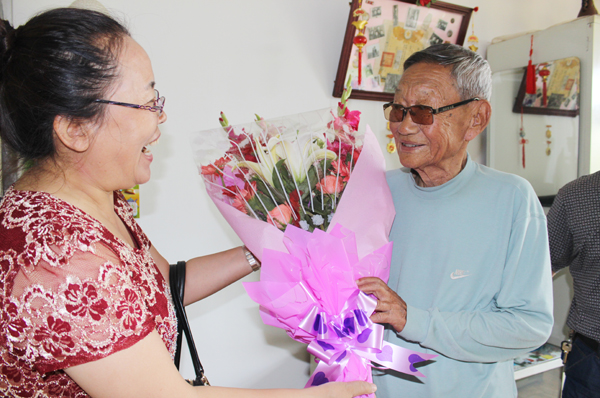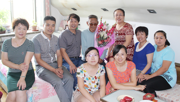 7月31日,八一前夕,附属一院机关第一党支部书记郭占跃带领党员一行8人,怀着崇敬的心情,带着鲜花和果蓝,来到参加过抗日战争的老军人李百辉家中,看望老人,听老人讲战斗故事,与老人一起迎接“八一”建军节的到来,对支部党员进行爱国主义及革命英雄主义教育。