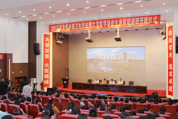 2014年,陆昊省长在《政府工作报告》中提出“启动乡镇卫生院医务人员补充计划”,此项计划也是省政府2014年34件民生实事之一。按照计划,每年公开招聘统招本、专科及以上学历应、往届医学毕业生1000人,连续3年共计招聘3000人,每年为每个乡镇卫生院至少招聘1人。此项计划的实施将极大地缓解我省乡镇卫生院人才不足、卫生技术人员素质偏低、队伍不稳定,特别是执业(助理)医师偏少等问题,也将为实现医改强基层目标奠定坚实基础。今年是此项计划实施的第二年,继去年成功完成1155名乡镇卫生院应聘医学毕业生岗前培训任务后,学院今年又荣幸地受省卫计委委托承担此次岗前培训工作。