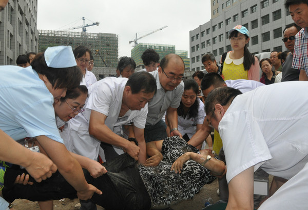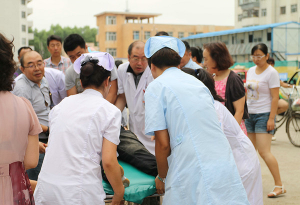 早上8点30分,徐女士在女儿的陪同下刚刚走进附属二院院内,就突然倒地不省人事,女儿顿时惊慌失措,声嘶力竭地呼叫:“妈!妈!你怎么了?你怎么了?快来人啊,快来人啊,我妈她不行了,快救救她啊!”