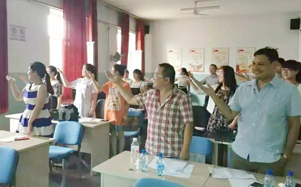 附属一院口语培训已经进行了三期,前两期共有44人顺利结业,其中,史慧萍获得优秀教师口语培训班学员称号;崔立然、富强被推荐参加学院首批国内知名大学英语集中培训;李艳敏被推荐参加东北师范大学英语集中培训班;孔祥军、王丹通过了学院的选拔,将在下学期为留学生进行授课。