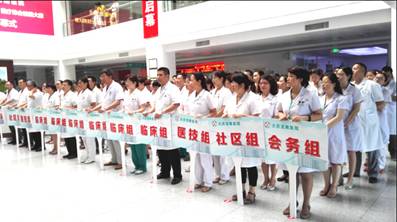 大赛开幕式在医院门诊一楼就诊大厅举行,医院领导班子成员、院本部及成员医院参赛选手300余人参加开幕式。开幕式由医院副院长任中秀主持,院长翟秀伟致开幕词,裁判代表和参赛选手代表分别宣誓,医院党委副书记郑国贤宣布大赛正式开始。此次比赛分为初赛、复活赛、决赛三个阶段,初赛时间为7月20—29日,决赛时间从8月3日开始,8月7日结束。整个赛程中,每天13:00至16:25,都将进行6轮、12组的操作比赛,操作比拼结束后,所有参赛选手还将进行理论考试。初赛结束后,将从63支代表队、252名参赛选手中筛选出优秀选手进入决赛。