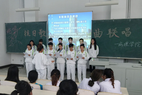 9月1日,病理学院在学生中开展了抗日歌曲联唱活动。以班级为单位组建的小合唱团依次上台表演,同学们高唱着《黄河大合唱》《没有共产党就没有新中国》《团结就是力量》等充满正能量的歌曲,纪念抗战胜利。教职工则到齐齐哈尔市博物馆参观了抗战胜利70周年图片展。活动后,师生们纷纷表示通过活动深刻理解了抗日战争胜利的伟大意义,在今后的工作和学习中,要坚定信念,踏实努力,以实际行动为学院的快速发展和为实现中华民族伟大复兴的中国梦贡献力量。