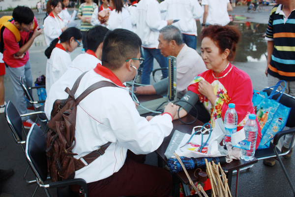 8月28日,精神卫生学院志愿者到华溪社区,与居民们一起观看了精彩的文艺演出,共同重温那段难忘的历史。观看演出前,志愿者们拿上劳动工具帮助社区工作人员清理了小区路面上的积水和墙壁上的小广告,为小区送去了一份洁净。演出过程中,志愿者们运用所学专业知识,为居民们进行了心理咨询、秋季传染病预防宣传,并现场为居民测量了血压。
