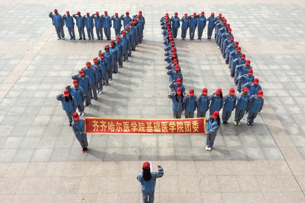 9月2日,基础医学院学生在大医广场排成“70”字样,并庄严宣誓:“我们要珍惜和平稳定的美好生活,努力发扬爱国主义精神,为祖国美好的明天贡献自己的力量……”言辞真切的誓词以最鲜明有力的方式将爱国主义精神根植到每一位同学的心中。同时,基础医学院学生还共同观看了爱国主义题材视频,交流了观看感想,并参与了抗日战争摄影展等活动。
