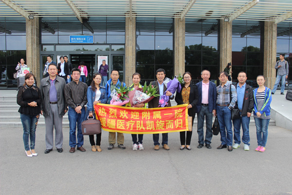 9月8日9时30分,附属一院第二批援疆医护人员副主任医师杨树柱、冯立军,神经外科护士长张敏圆满完成为期三个月的对口支援任务。附属一院党委书记胡凯等医院领导带领相关科室负责人及援疆干部家属到机场迎接。今年6月9日,三位同志带着医院领导的期望和嘱托来到新疆阿勒泰地区富蕴县哈萨克医医院。他们克服了饮食、时差等生活上的各种不适,很快进入工作角色,积极投入到工作中,协助当地医生开展各种疑难手术,尽其所能救治当地病患,出色地完成了援疆任务,得到了哈萨克医医院领导的肯定和当地患者的好评。
