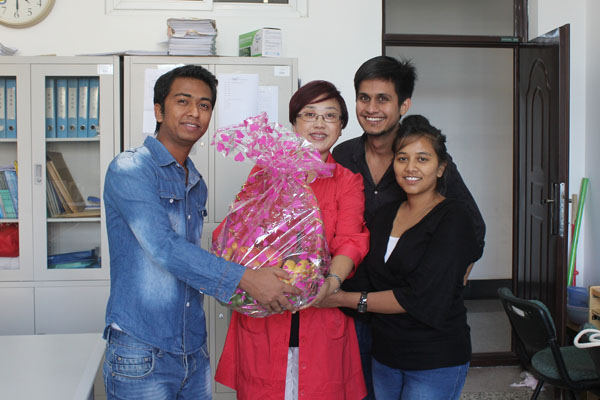 9月9日下午,留学生自发看望了留学生导师和授课教师,祝福老师节日快乐,并纷纷用自己国家的语言对老师说:“老师,谢谢您!”留学生的真情让老师们动容,他们表示,这份沉甸甸的祝福和留学生们真诚的笑容是教师节收到最好的礼物,今后,他们会更加积极和严谨地投身到各项教学工作中。