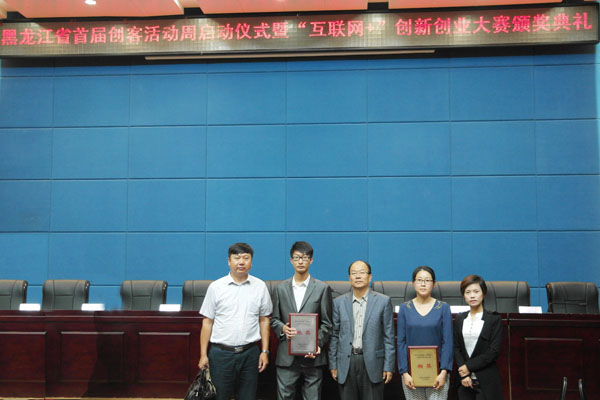 金秋九月,捷报驰飞。9月14日,在黑龙江省首届创客周启动仪式暨“互联网+”大学生创新创业大赛颁奖典礼上,学院公共卫生学院学生李铮率领的常青藤创客团队和张栋栋率领的快甩创客团队,分别荣获一等奖中的银牌和铜牌;基础医学院学生庞博率领的团队荣获三等奖。学院党委副书记崔光成、就业处处长宋耀新赴哈尔滨理工大学参加颁奖典礼,代表学院向获奖学生和老师表示祝贺。副省长孙东生出席颁奖典礼并发表重要讲话。