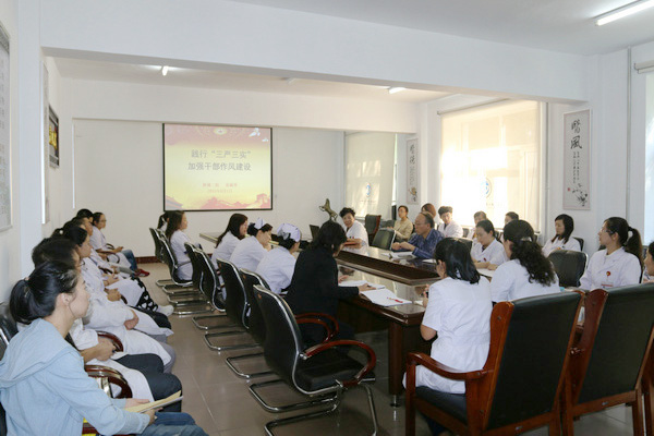 9月16日下午,附属二院院长张淑英在精神卫生中心二楼会议室进行了“三严三实”专题党课培训,机关一支部、内科一支部、内科三支部全体党员干部参加了学习。会议由党委委员、党办主任付桂华主持。