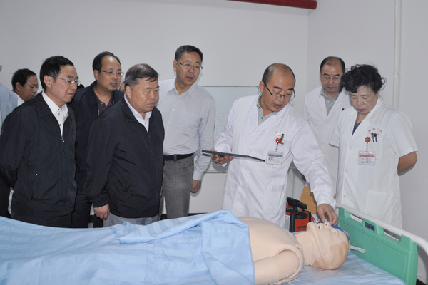 在附属二院,专家组听取了医院院长张淑英作的《求真务实 科学发展 努力开创临床教学新局面》汇报,并到临床技能中心实地走访。