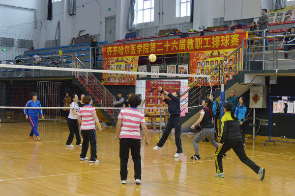 为不断提高广大教职工的身体素质,进一步丰富教职工的校园文化生活,10月10日,由学院工会主办、体育部承办的第二十六届教职工排球赛在齐齐哈尔市第三中学排球馆举行。本次比赛共有8支代表队参赛,经过激烈紧张的角逐,附属二院代表队、院部代表队分获男子组冠亚军,女子组由附属二院代表队和教师联队分获冠亚军。学院副院长丛明宇、工会主席何宪坤参加闭幕式并为获奖代表队颁发了奖杯。
