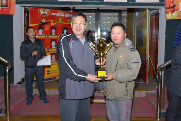 学院工会主席何宪坤为获奖代表队颁发奖杯