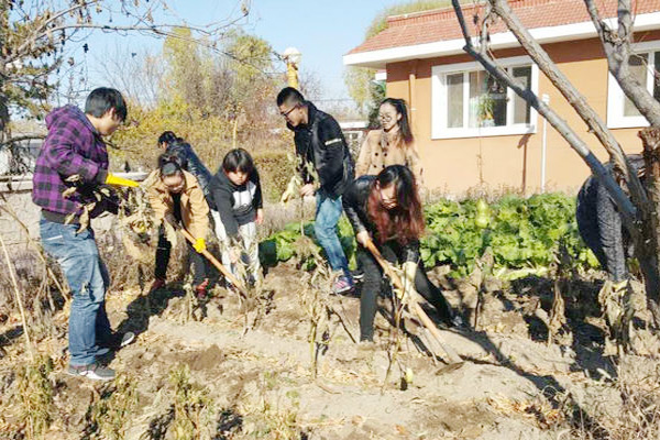 志愿者清理菜园