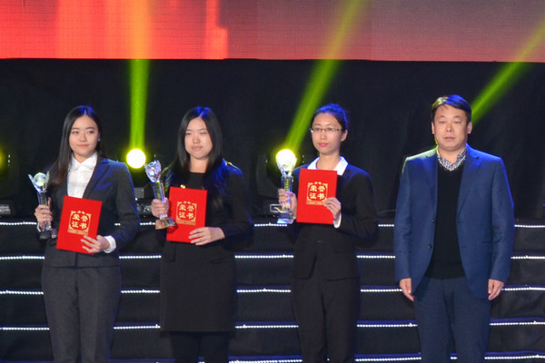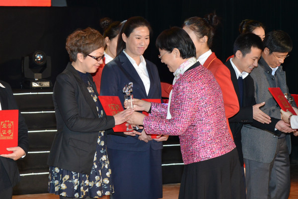 省教育厅厅长徐梅为付伟老师颁发荣誉证书和奖杯