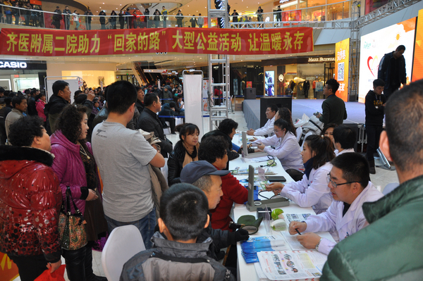 11月15日,黑龙江广播电视台发起的“回家的路”爱心手环大型公益活动在我市万达广场盛大举行。附属二院作为百姓健康的守护者,倾情参与到“回家的路”大型公益活动中。