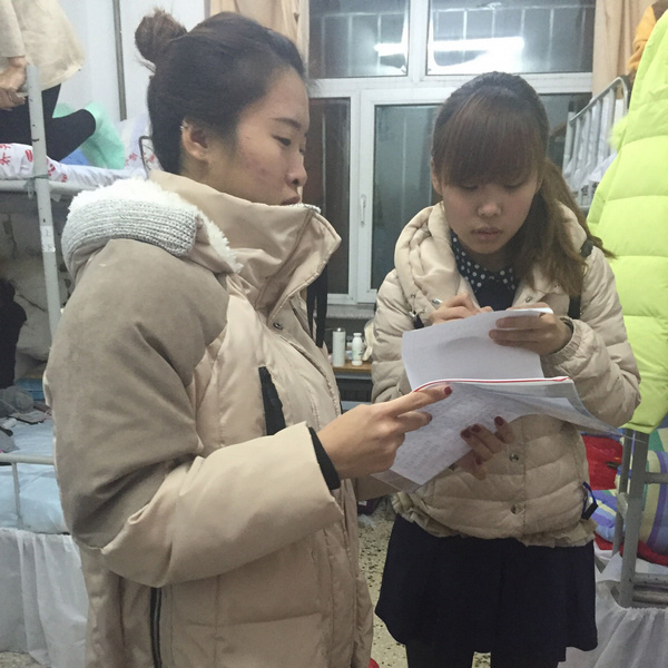工作人员记录学生就寝情况