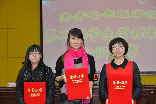 竞赛自10月9日启动以来得到了学院领导的高度重视,各二级学院认真组织广大新生积极参与。经过各二级学院形式多样的初赛与复赛的层层选拔,最终7个学院每支代表队推选出3名优秀选手参加学院总决赛。总决赛包括必答题、抢答题、风险题、附加题及观众答题5个环节,竞赛以《2015级新生入学教育手册》为范本,重点考察选手对学院概况、大学生日常教育管理、院规院纪的掌握情况。赛场上,21名选手睿智、沉稳,尽显齐医学子的风采。经过激烈角逐,最终,精神卫生学院代表队摘得桂冠,药学院代表队、护理学院代表队荣获二等奖,病理学院代表队、医学技术学院代表队、公共卫生学院代表队、基础医学院代表队荣获三等奖。医学技术学院、精神卫生学院、药学院荣获最佳组织奖。