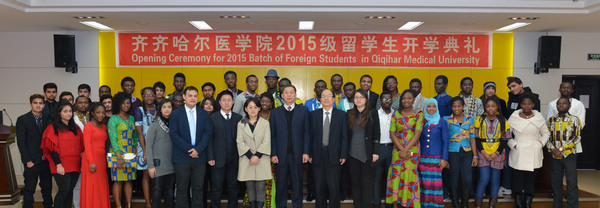典礼上,刘吉成院长代表学院用热情洋溢的英文致辞。他对2015级留学生的到来表示了热烈欢迎,向新同学介绍了中国近年来的建设发展成就、齐齐哈尔的特色文化、学院概况及近年来取得的突出成绩,他对留学生的大学学习生活提出了殷切期望和具体要求,并祝愿全体留学生在齐医学习、生活愉快。