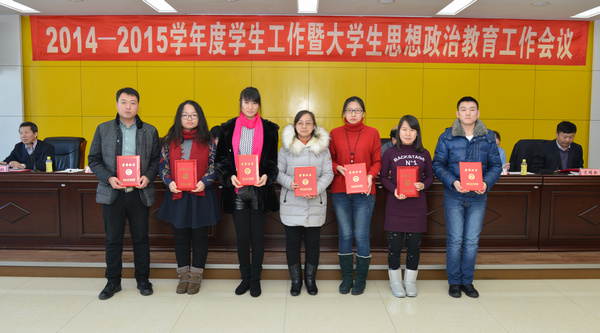 会上表彰了2014-2015学年度优秀学生工作单位、就业工作先进集体、优秀辅导员、优秀班主任、就业工作先进个人以及优秀指导教师和省级先进个人。精神卫生学院、附属三院、附属一院分别以《全员参与 扎实推进 争创优良学风》《让青春在实践中焕发光彩》《创新就业形式 拓宽就业渠道 不断提高学生就业质量》为题,同与会人员进行了经验交流。