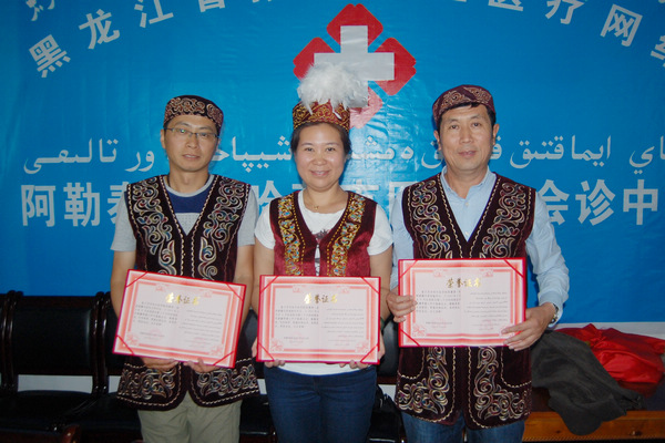 附属一院骨外科副主任医师杨树柱、老年病科副主任医师冯立军和神经外科护士长张敏于2015年6月至9月在新疆阿勒泰地区哈萨克医医院(以下简称哈医医院)执行援疆任务。他们始终牢记组织重托,克服种种困难,以满腔热情和精湛医术奋战在援疆医疗救死扶伤第一线,视各族群众为亲人,为当地卫生事业的发展作出了积极贡献,用自己的实际行动浇灌着民族和谐之花,延续着援疆路上浓浓的医脉情缘。