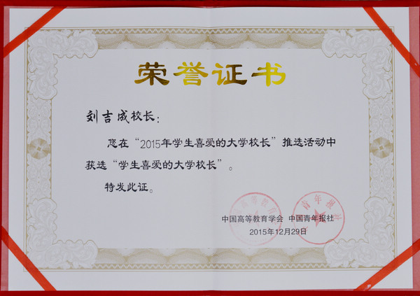 1月17日,由中国高等教育学会和中国青年报社联合举办的“2015年学生喜爱的大学校长”推选活动颁奖典礼暨论坛在京举行。学院院长刘吉成获奖并应邀参会,学院报送的微视频《我们的院长》在评选中获“最佳视频奖”。全国48所获奖高校的校长及代表参加了大会。