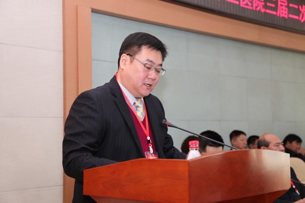 附属三院党委书记黄海涛讲话。他指出,在医院各项工作取得发展进步的同时,仍要清醒地认识到工作存在的不足。面对机遇与挑战,要以加快医院发展为主线,以“学术型”医院建设为重点,以服务群众、促进医院发展为目标,立足于专业优势,有效整合医院资源,科学规划、合理布局、强化管理、创新思路,坚定改革决心、勇担攻坚使命、共谋发展良策。他希望各位职工代表继续认真履责,将会议精神贯彻落实好,使每名职工都明晰医院的改革发展目标,把全部的热情与精力投入到工作中。