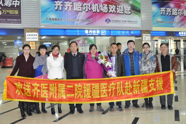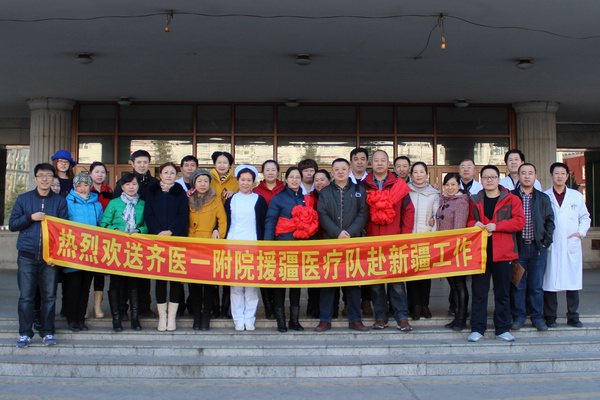 为贯彻中央第二次新疆工作会议精神,落实省委、省政府对口援疆工作部署,进一步提升受援地区医疗技术水平,省卫生计生委决定选派专家到新疆阿勒泰地区及新疆生产建设兵团开展带教帮扶工作。各附属医院对此项工作高度重视,医院职工积极响应,在圆满完成2015年度援疆工作的基础上又开启了新一年度的工作。援疆医生表示将珍惜此次机会,认真工作,在援疆工作期间牢记重托,服务好边疆群众,为增进民族团结贡献力量。