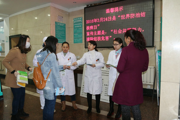 附属二院则利用电子屏幕播放世界结核病防治日宣传口号,并在医院门诊布置了宣传板、彩旗等,工作人员共计发放宣传单480余份,现场为200余人次解答了结核病防治的有关知识。