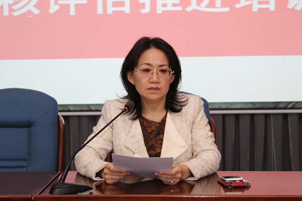 在审核评估培训会上,护理学院院长杨立群教授首先结合护理学专业认证工作作经验分享,并对审核评估工作的准备情况作了汇报。随后,黑龙江工程学院副院长叶树江教授以《本科教学审核评估与教学改革》为题,从审核评估思想理念与要求、审核评估范围特征与原则、审核评估项目要素的说明、专家进校前的评建工作要点、专家进校阶段的工作内容、整改阶段工作要求及以审核评估促进教学改革等方面为大家进行了指导。他指出,五位一体的评估体系是创新的、协调可持续、开放的,体现了开放、共享的理念,体现了现代大学新的教育教学质量观。