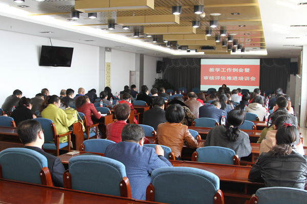 4月14日,2015-2016学年第二学期教学工作例会暨审核评估培训会在图书行政楼1801会议室召开。学院副院长张晓杰出席会议并讲话,各院、部、处教学管理干部和相关职能部门负责人80余人参加会议,会议由教务处处长李静平主持。