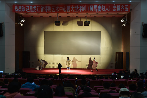五四青年节当天,“高雅艺术进校园”活动走进学院,300余名师生共同欣赏了黑龙江省评剧艺术中心的艺术家们带来的大型评剧《风雪夜归人》。剧组精湛的演技及细腻而熟练的唱功让现场观众连连惊叹、掌声不断,纷纷为演职人员的专业、敬业点赞。本次演出也为迎接建校70周年献上了一份文化厚礼。