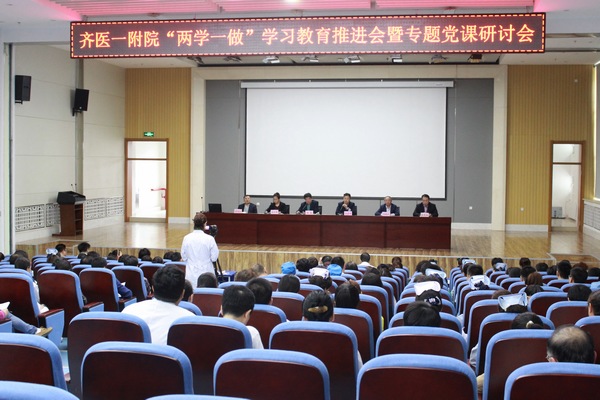 5月21日上午,附属一院“两学一做”学习教育推进会暨专题党课研讨会在内科综合楼学术报告厅召开,医院领导班子成员、中层干部及全体党员参会。会议由医院院长张嘉伟主持。